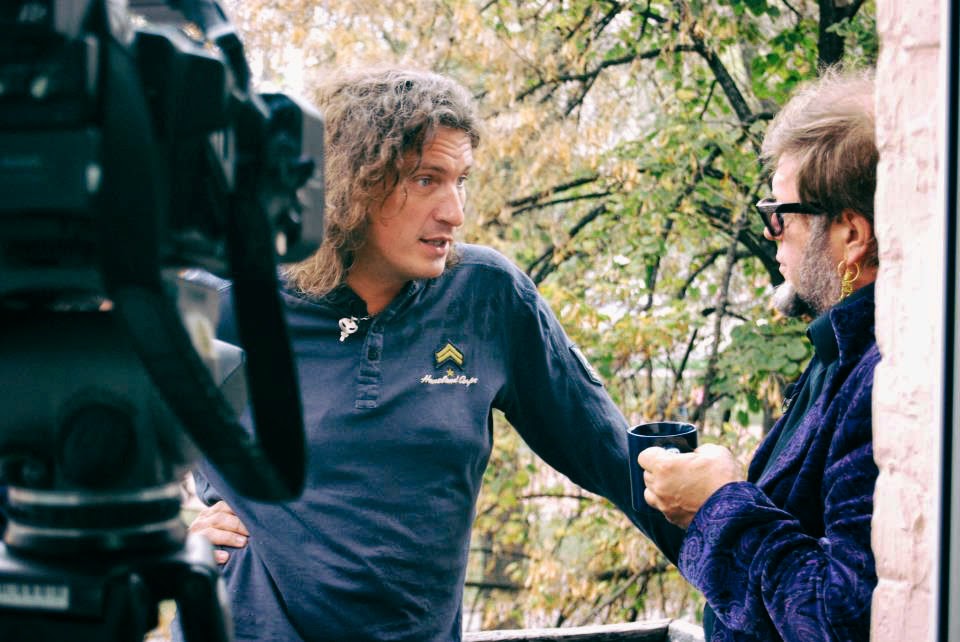 Мои коллеги операторы и я пошли посмотреть локацию, в которой должны были снимать. Комната оказалась неинтересной, скучная, блеклая, как кабинет гос. служащего, и вообще нисколько не кинематографичная. Я сразу же приняла решения там не снимать, а вопрос где снимать весел в воздухе, и изрядно напрягал парней. Я пробежалась по всей локации, и лучшего места, чем балкон, не нашла. Ведь интервью хотелось записать непринужденно, между прочем, как встречу музыкантов в неформальной обстановке. Тут же вдохновилась фильмом Джармуша "Кофе и сигареты", где культовые чуваки Том Уэйтс и Игги Поп мило беседуют за чашечкой кофе. Озвучила идею Кузьме о том, что хочу снимать на балконе, видимо чувствовала в его лице поддержку. Оказалось, что этот фильм Джармуша он видел, и сказал, что это крутая идея снимать на балконе, и что будет не так, как у всех. После, я уговорила менеджера БГ, он сразу не хотел снимать в другой локации, и вообще настоятельно рекомендовал мне "не дирижировать", хотя потом согласился, так как оказался человеком невредным.